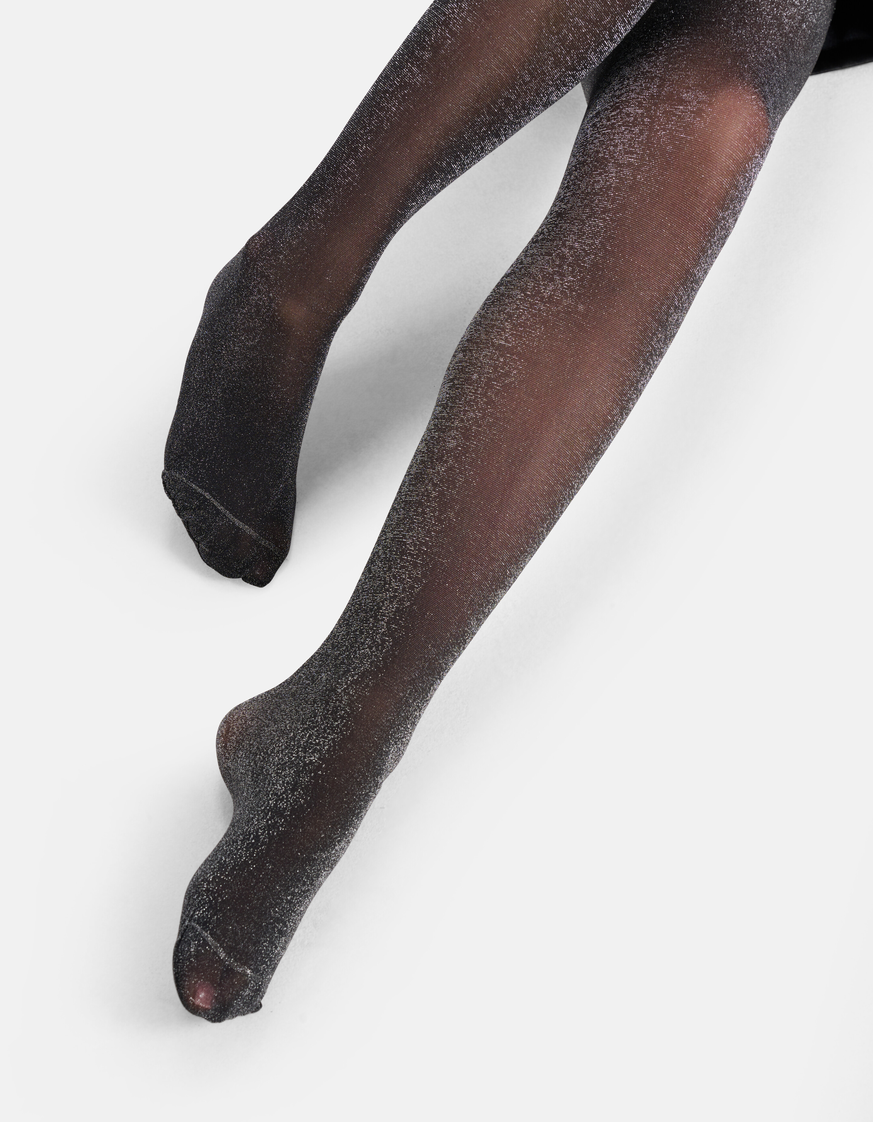 Verleihen Sie Ihrem Outfit mit der Glitter Strumpfhose etwas mehr Glanz! Die Strumpfhose hat überall silberne Glitzer! Kombinieren Sie zum Beispiel die Strumpfhose mit einem kleinen schwarzen Kleid und schönem Schmuck und Ihr Outfit ist komplett.