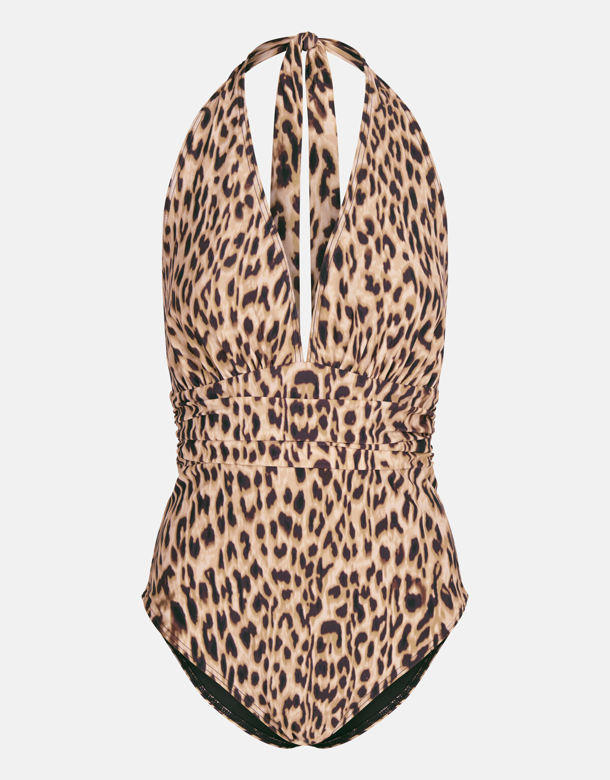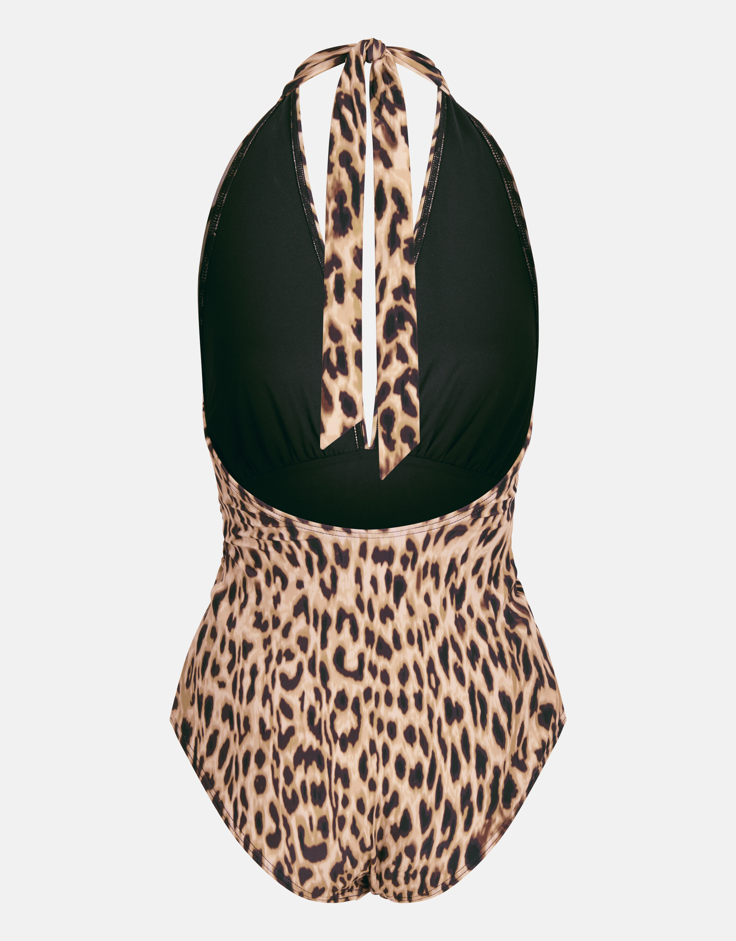 Ein Muss für den Urlaub! Der Cheetah Print Swimsuit ist dank seines trendigen Prints ein echter Hingucker. Der Badeanzug hat eine normale Passform, einen tiefen Ausschnitt, einen offenen Rücken und ein normales Futter am Rücken. Der Artikel zeichnet sich durch die braune Farbe mit einem Allover-Geparden-Print aus. Ein schönes Detail ist die Raffung an der Vorderseite, die den Badeanzug nach unten fallen lässt. Der Gürtel am Halsausschnitt lässt sich durch engeres oder lockereres Binden verstellen. Er besteht aus Polyamid, Elastan und Polyester. Dank dieser Zusammensetzung ist der Badeanzug von hoher Qualität, formstabil, dehnbar und angenehm zu tragen. Vervollständigen Sie den Look mit einer Gepardenhose mit weitem Bein oder einem Geparden-Maxikleid, und schon sind Sie startklar! Unsere Bademode wird mit einem Hygieneschutzaufkleber und einer Etikettierung geliefert. Möchten Sie den Artikel umtauschen oder zurückgeben? Dann vergewissern Sie sich, dass die Aufkleber und die Etikettierung intakt sind. Das Model ist 177 cm groß und trägt Größe S. Der Artikel ist maschinenwaschbar bei 30°C.
