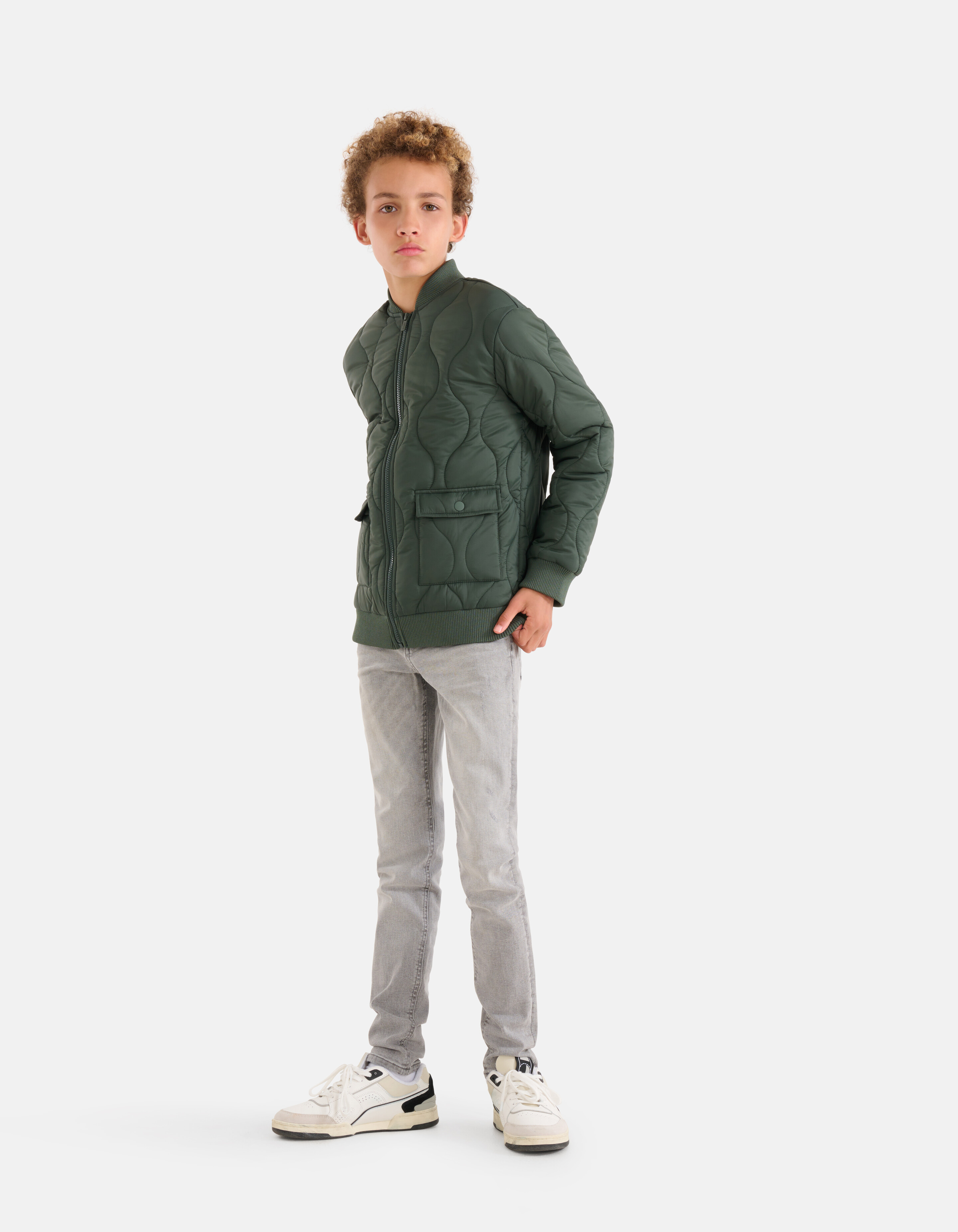 Das hält mich warm! Die Wavy Padded Jack hat lange Ärmel, einen hohen Halsausschnitt, einen Reißverschluss und eine normale Passform. Der Artikel zeichnet sich durch seine dunkelgrüne Farbe, den gesteppten Stoff und die Pattentaschen auf der Vorderseite aus. Der Stoff weist ein wellenförmiges Muster auf. Die Jacke hat außerdem Rippbündchen an der Unterseite, an den Ärmeln und am Halsausschnitt, was ihr einen robusteren Effekt verleiht. Kombinieren Sie es mit einem Statement-T-Shirt und einer hellen Denim-Jeans für einen lässigen Look!