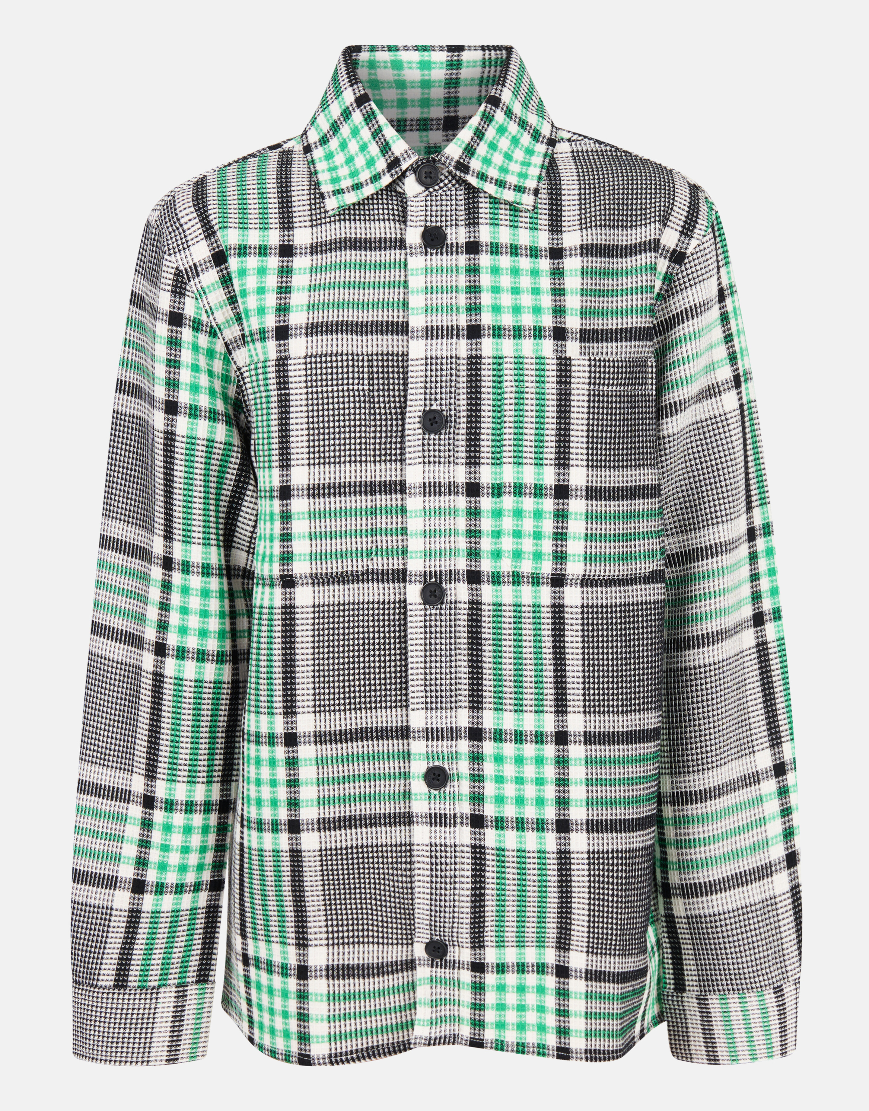 Muss man haben! Das karierte Overshirt hat lange Ärmel, einen Kragen, einen Druckknopfverschluss und eine normale Passform. Der Artikel zeichnet sich durch die grüne Farbe mit einem Allover-Karomuster im Stoff aus. Das Muster hat die Farben Schwarz und Weiß. Außerdem hat sie zwei Taschen auf der Vorderseite. Es besteht aus 100 % Baumwolle und ist daher angenehm zu tragen und von hoher Qualität. Kombinieren Sie es mit einem grünen T-Shirt und hellen Jeans für einen coolen Look!