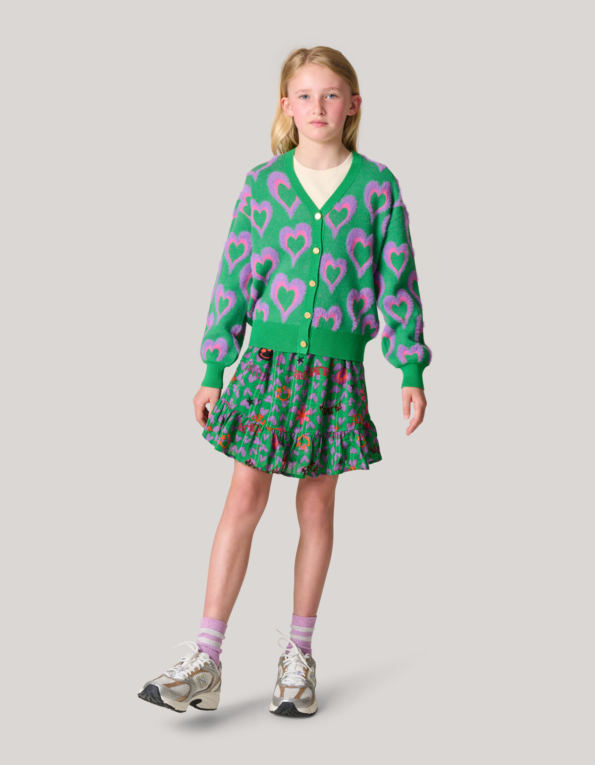 Bequem und stilvoll! Holen Sie sich ein vielseitiges Kleidungsstück mit der Gedruckten Strickjacke Grün. Die Strickjacke zeichnet sich durch die grüne Farbe mit lila Herzchen-Design aus. Dies sorgt für einen auffälligen Look mit einer verspielten Note. Die Strickjacke hat eine reguläre Passform, eine verkürzte Länge und lange Ärmel. Sie hat eine Knopfleiste und einen V-Ausschnitt, was sie leicht zu tragen macht und perfekt zu Ihrer Lieblingsjeans passt. Ob Sie einen Tag aus sind oder einen entspannten Abend zu Hause verbringen, diese Strickjacke ist die ideale Ergänzung zu Ihrer Garderobe!