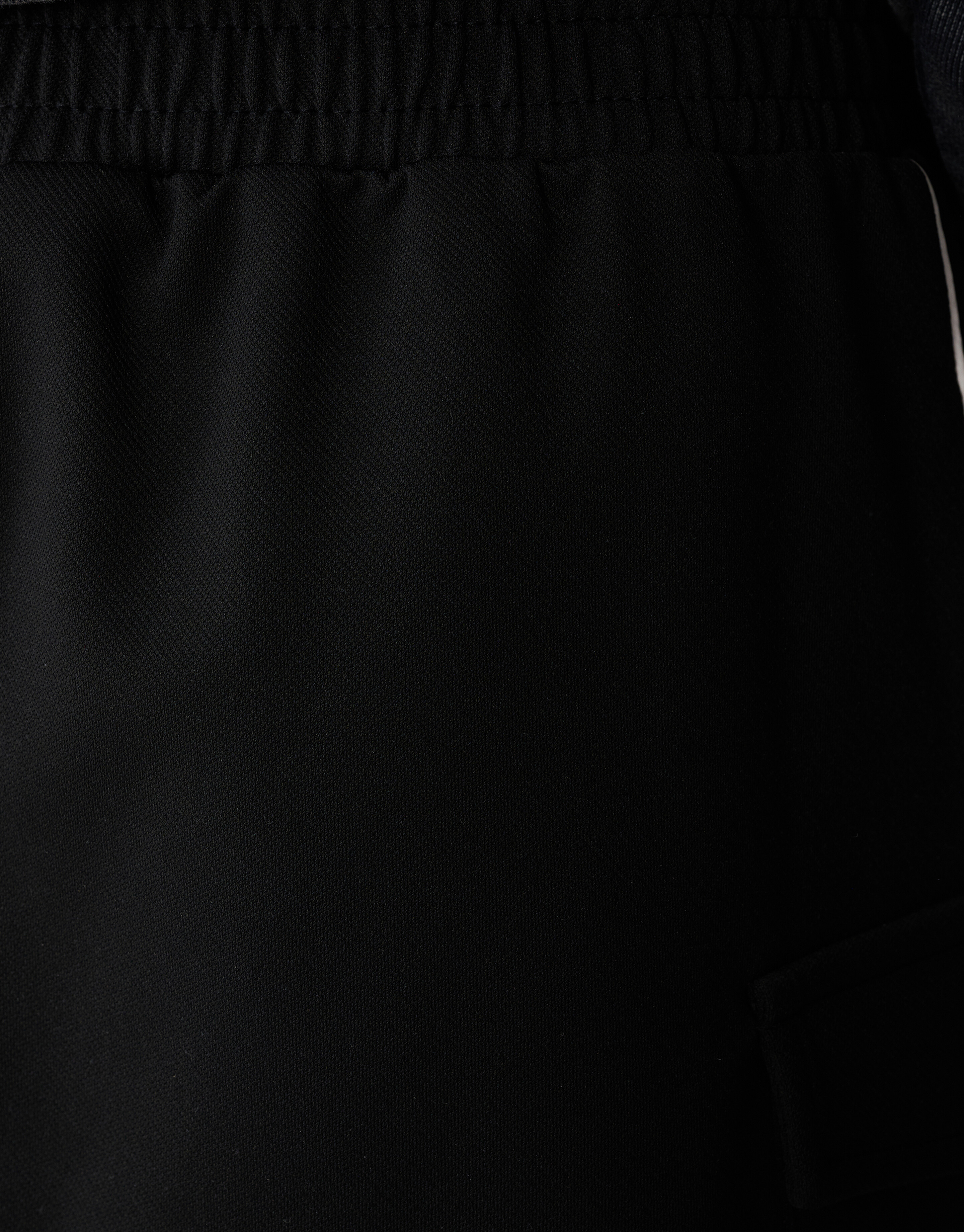 Dieser schwarze Minirock ist ein echtes Must-have für jede Garderobe. Dank des sportlichen Cargo-Looks, der Tape-Details an den Seiten und der praktischen Taschen verbindet dieser Rock Stil mit Funktionalität. Hergestellt aus hochwertigem Polyester bietet er sowohl Komfort als auch eine moderne Optik. Der elastische Taillenbund und das leicht dehnbare Material sorgen für eine perfekte Passform und optimalen Tragekomfort. Der Sporty Cargo Minirock Schwarz ist bereit, Eindruck zu machen!