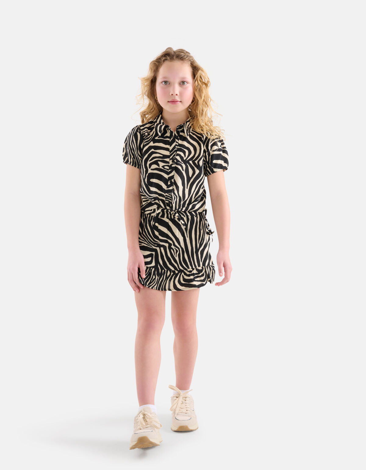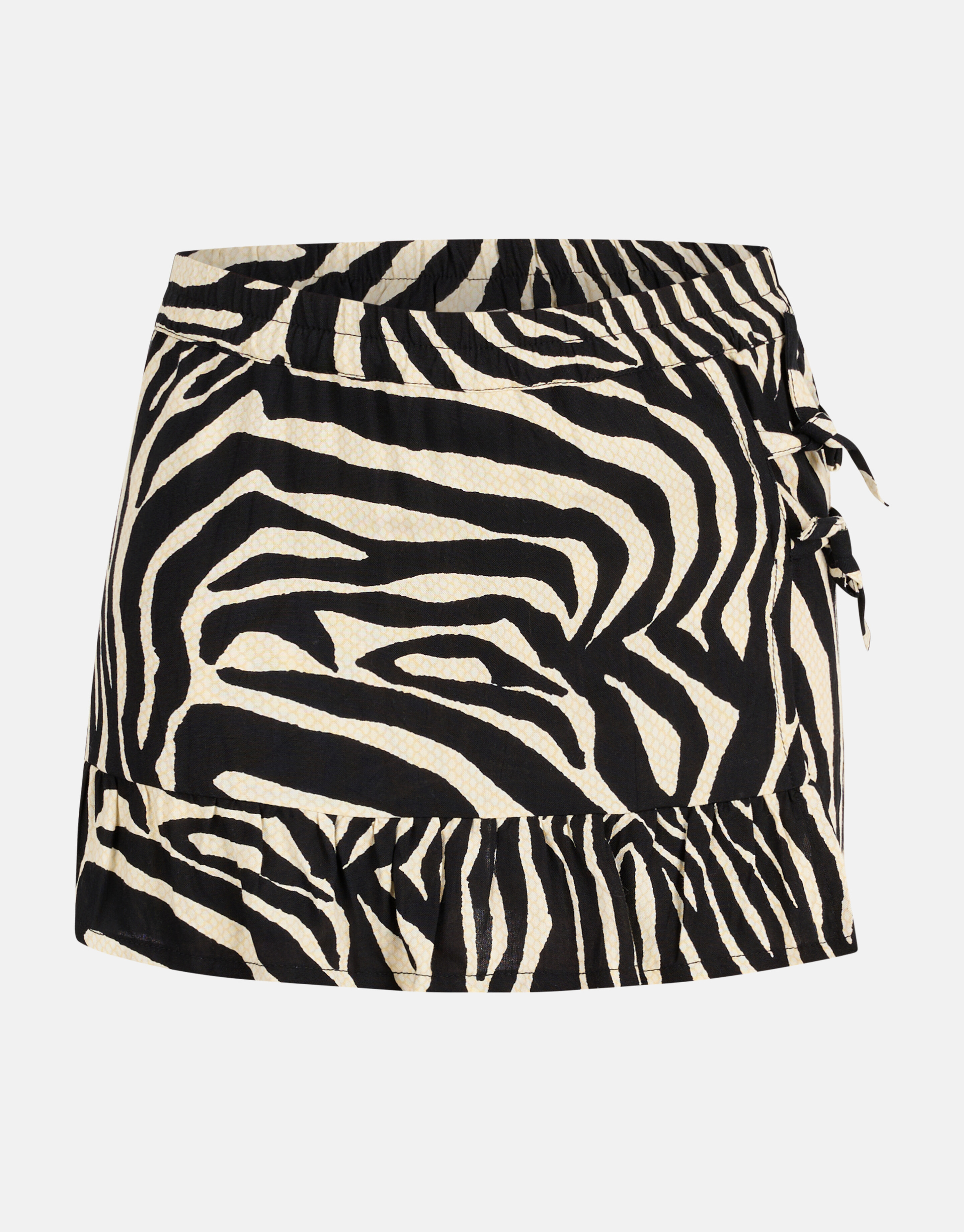 Bedrucken Sie es! Zebra Skort hat eine hohe Taille, eine Minilänge, eine normale Passform und einen elastischen Bund. Der Artikel zeichnet sich durch den Allover-Zebra-Print und ein Skort-Modell aus. Bei diesem Modell handelt es sich um eine kurze Hose, die jedoch vorne eine Schicht aufweist, die an einen Rock erinnert. Diese Lage kann mit zwei Kordelzügen geschlossen werden. Außerdem hat es eine weitere verspielte Rüsche am unteren Ende. Es besteht aus 100 % Viskose und ist daher farbecht und angenehm zu tragen. Vervollständigen Sie den Look mit einem Rüschen-Top und Sie sind startklar!