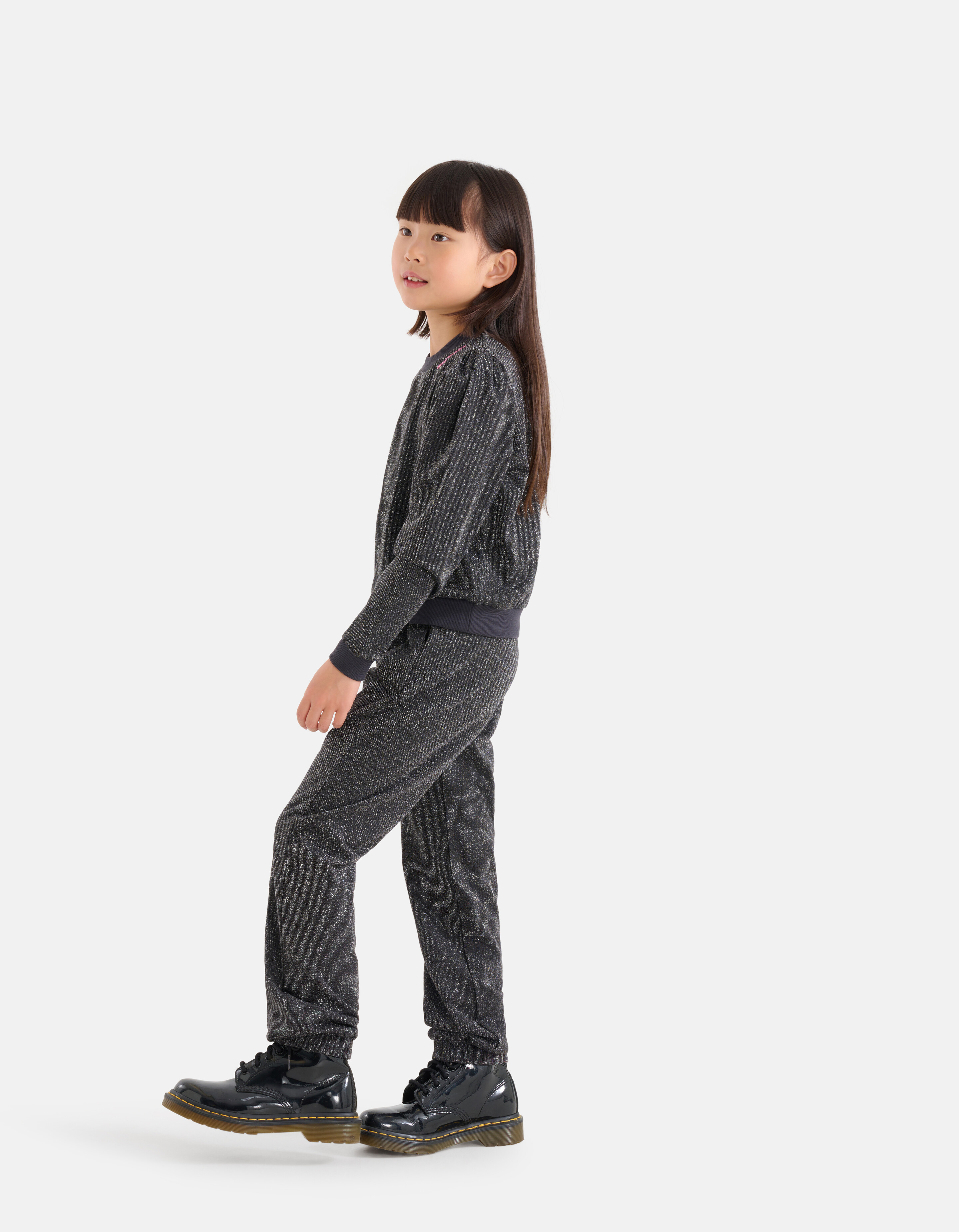 Im Zweifelsfall lieber glitzern! Der Glitzer-Pullover hat lange Ärmel, einen hohen Ausschnitt, einen Stretch-Stoff und eine normale Passform. Das Kleidungsstück zeichnet sich durch die dunkelgraue Farbe mit einem silberfarbenen Lurexfaden aus, der durch den Stoff gewebt ist. Außerdem hat der Pullover einen dezenten Puffärmel und eine Stickerei am Halsausschnitt. Die Stickerei ist rosa und trägt den Schriftzug "stay golden". Er ist aus Polyester, Viskose und Baumwolle hergestellt. Durch diese Zusammensetzung ist es von starker Qualität, formstabil, farbecht und bequem. Tragen Sie es zu einer glitzernden Schlaghose für einen stilvollen Look!
