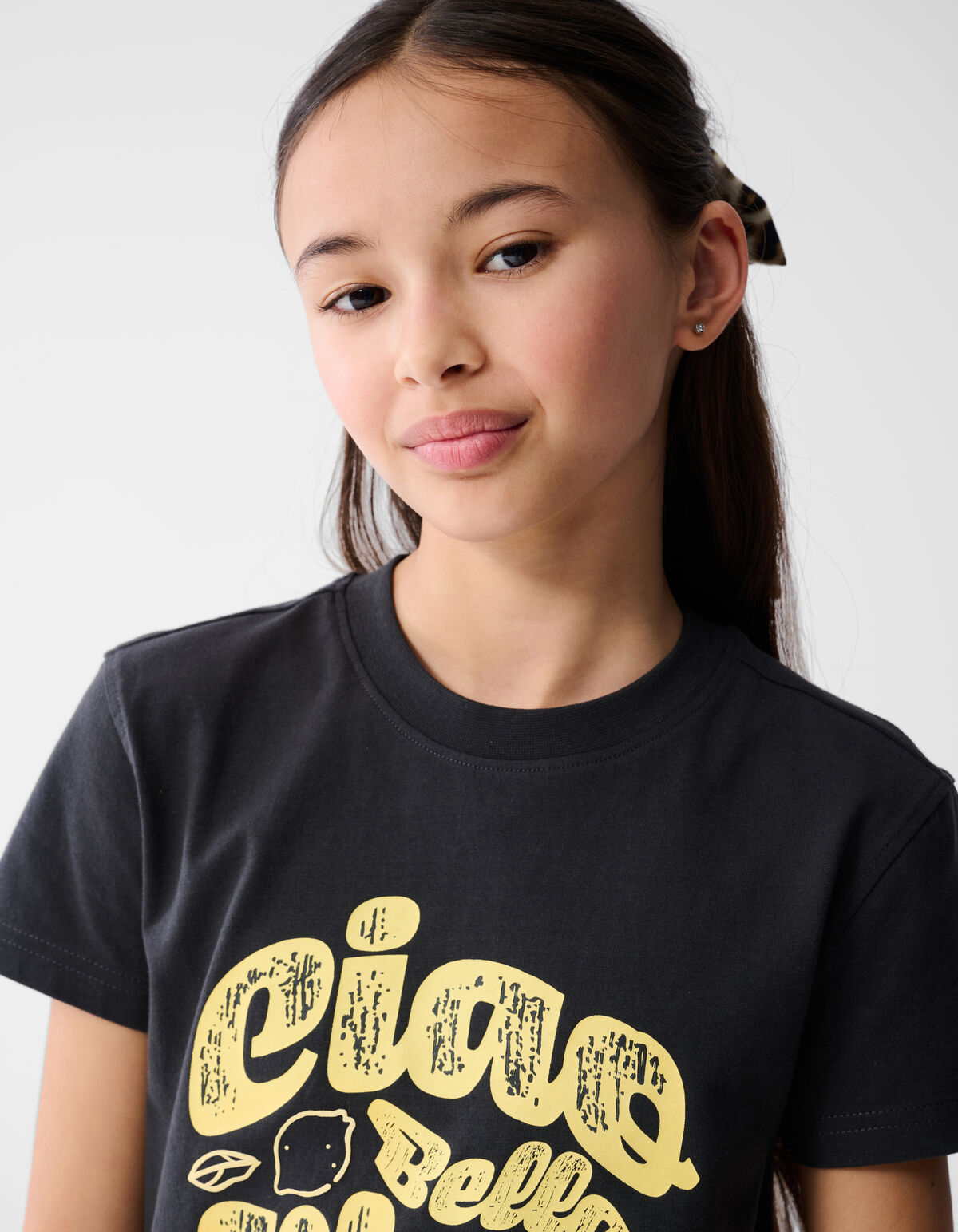 Ikonisch! Dieses Artwork T-Shirt in Dunkelgrau hat kurze Ärmel, eine normale Passform, einen dehnbaren Stoff und eine normale Passform. Außerdem zeichnet sich das T-Shirt durch die dunkelgraue Farbe mit dem gelben Artwork auf der Vorderseite aus. Das T-Shirt besteht aus 100 % Baumwolle, die für ein angenehmes Tragegefühl sorgt. Kombiniere dieses Shirt mit Shorts oder Jeans für einen tollen Look!