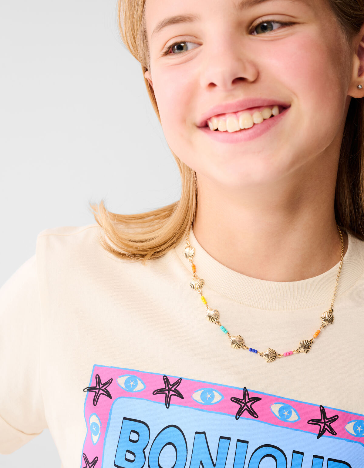 Must-have! Dieses tolle Bonjour Artwork T-Shirt Off White hat kurze Ärmel, einen Rundhalsausschnitt, einen dehnbaren Stoff und eine normale Passform. Außerdem zeichnet sich das Shirt durch seine wollweiße Farbe mit dem bunten Artwork auf der Vorderseite aus. Das Shirt besteht aus 100% Baumwolle und ist daher sehr angenehm zu tragen. Stiehl die Show mit diesem Must-Have!