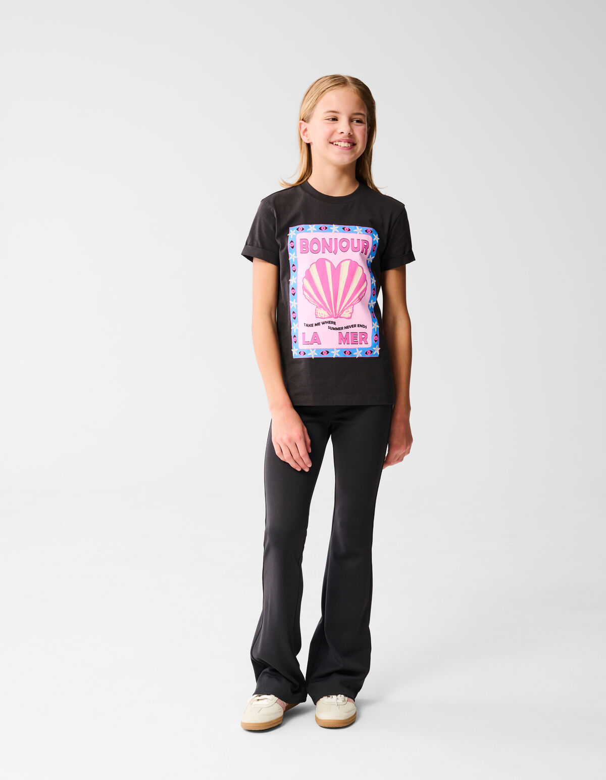 Must-have! Dieses tolle Bonjour Artwork T-Shirt Black hat kurze Ärmel, einen Rundhalsausschnitt, einen dehnungsarmen Stoff und eine normale Passform. Außerdem zeichnet sich das Shirt durch die schwarze Farbe mit dem bunten Artwork auf der Vorderseite aus. Das Shirt besteht aus 100% Baumwolle und ist daher sehr angenehm zu tragen. Stiehl die Show mit diesem Must-Have!