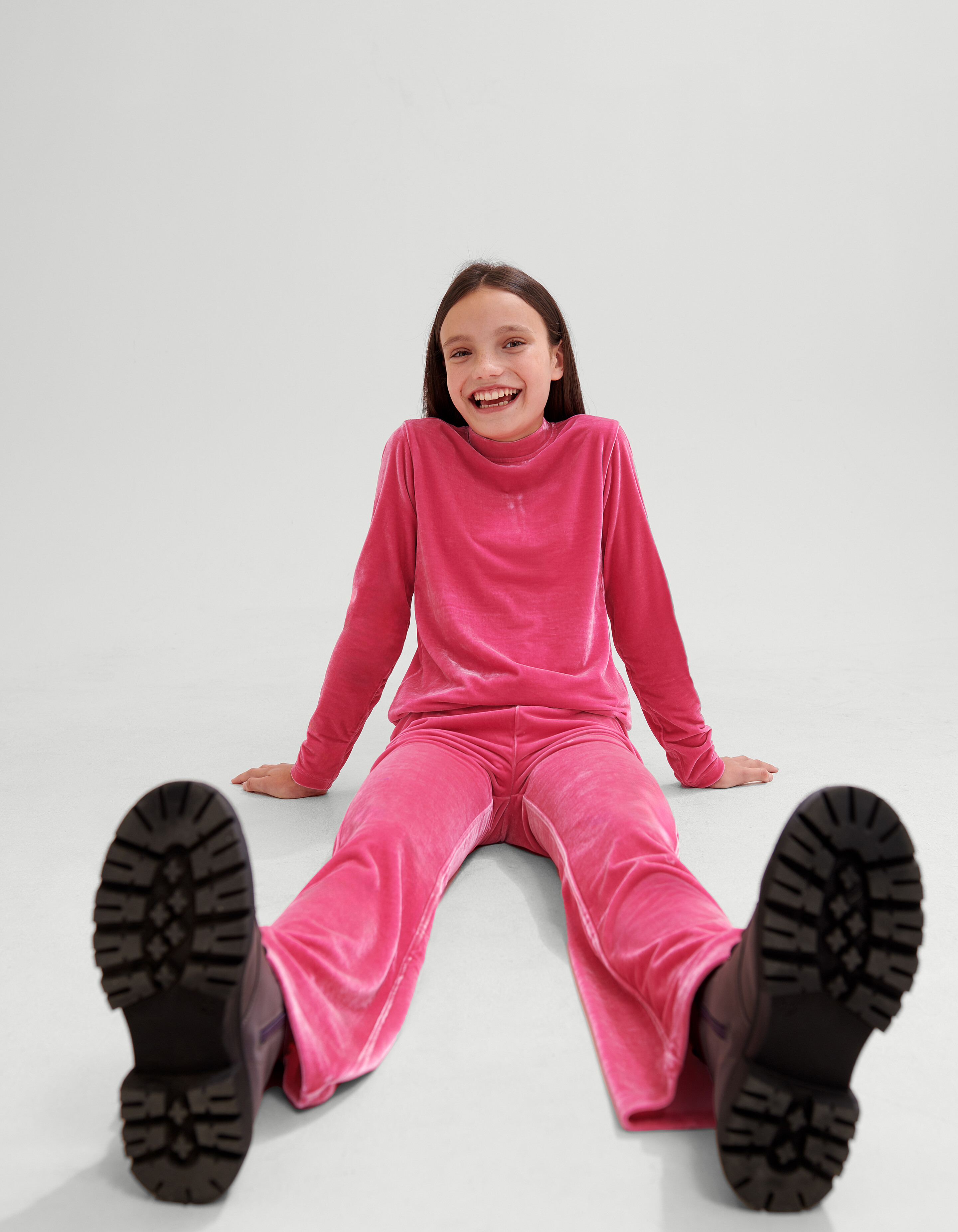 Pink ist die neue Kraft! Das Velvet Top hat lange Ärmel, einen dehnbaren Stoff, einen Knopfverschluss auf der Rückseite und eine taillierte Form. Das Kleidungsstück zeichnet sich durch seinen Samtstoff und die leuchtend rosa Farbe aus. Es ist aus Polyester und Elastan gefertigt. Dank dieser Zusammensetzung ist das Kleidungsstück von hoher Qualität, figurbetont und dehnbar. Tragen Sie es zusammen mit der passenden Samthose für ein komplettes Set!