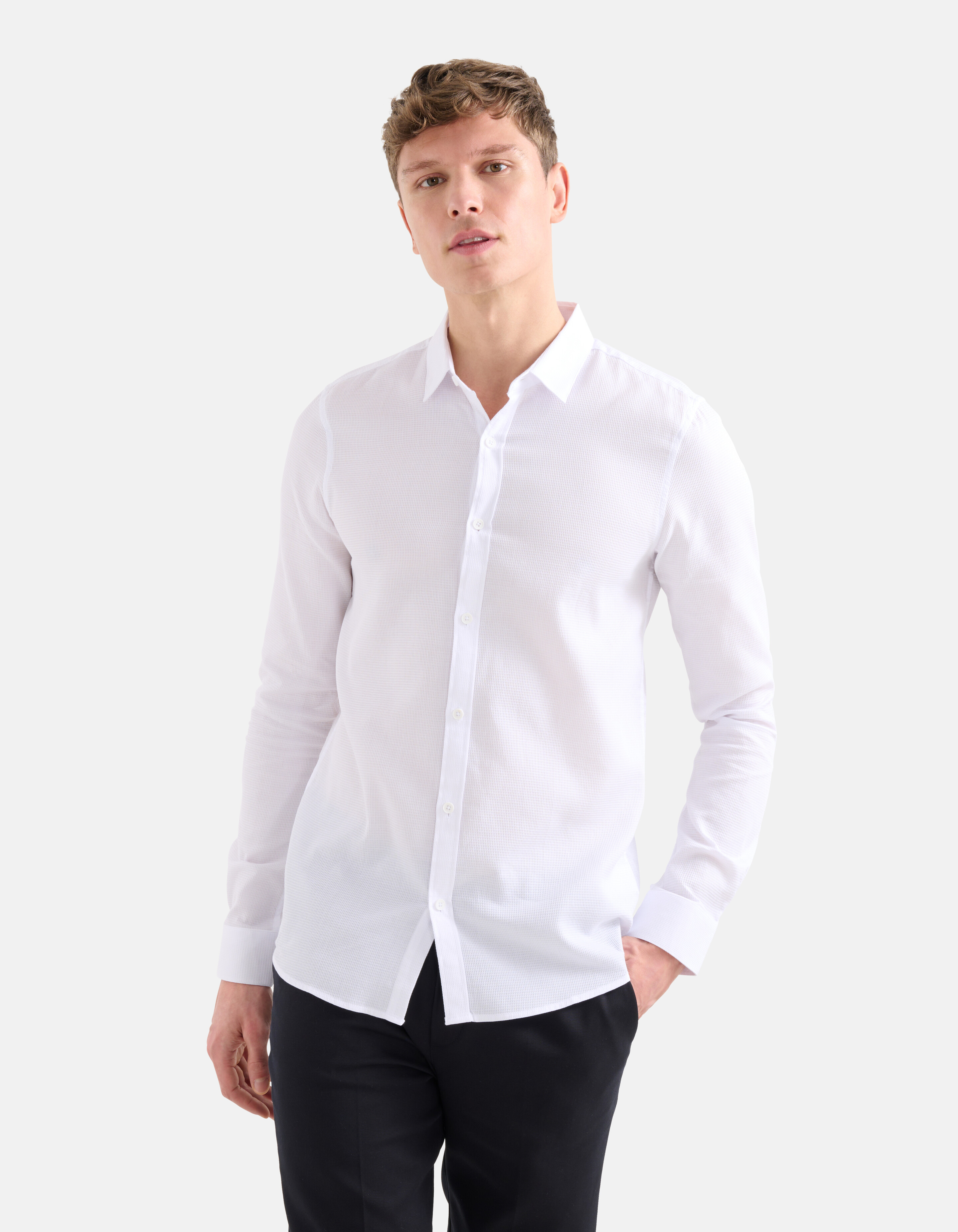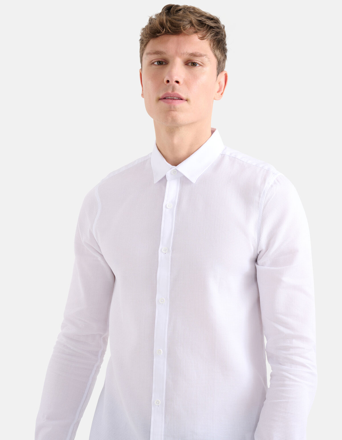 Ein Klassiker! Das Waffelhemd hat lange Ärmel, einen Kragen, einen Knopfverschluss und eine normale Passform. Der Artikel zeichnet sich durch seine weiße Farbe und das in den Stoff eingearbeitete Waffelmuster aus. Das Hemd besteht aus 100 % Baumwolle und ist daher von hoher Qualität und angenehm zu tragen. Die Farbe des Artikels macht ihn zeitlos. Sie möchten Ihren Kleiderschrank um weitere Farben ergänzen? Sie können! Kombinieren Sie es mit einer schwarzen Hose und Turnschuhen für einen eleganten Look. Das Model ist 189 cm groß und trägt die Größe M. Der Artikel hat eine Gesamtlänge von 77,5 cm bei Größe M.