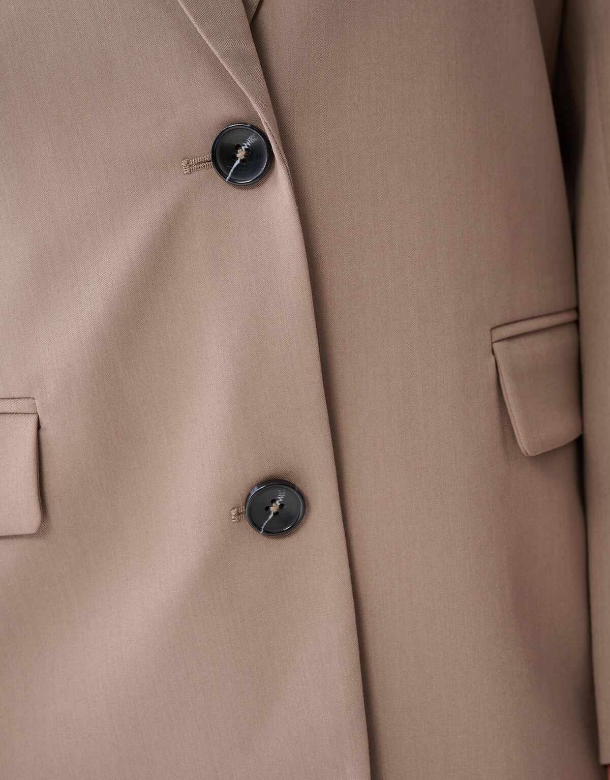 Ein Must-Have! Der Clean Blazer Brown ist die perfekte Ergänzung für Ihre Garderobe. Der Blazer hat einen klassischen Kragen, lange Ärmel, eine übergroße Passform und einen Knopfverschluss. Außerdem zeichnet sich der Blazer durch seine schwarzen Knöpfe und die braune Farbe aus. Der Blazer ist aus Polyester, Viskose und Elastan gefertigt. Diese Zusammensetzung sorgt dafür, dass der Blazer eine starke Qualität hat, formstabil und leicht dehnbar ist. Die Gesamtlänge des Blazers beträgt 74 cm bei einer Größe XS/S. Das Model ist 176 cm groß und trägt eine Größe XS/S. Kombinieren Sie den Blazer mit der passenden Hose für einen stilvollen Look!