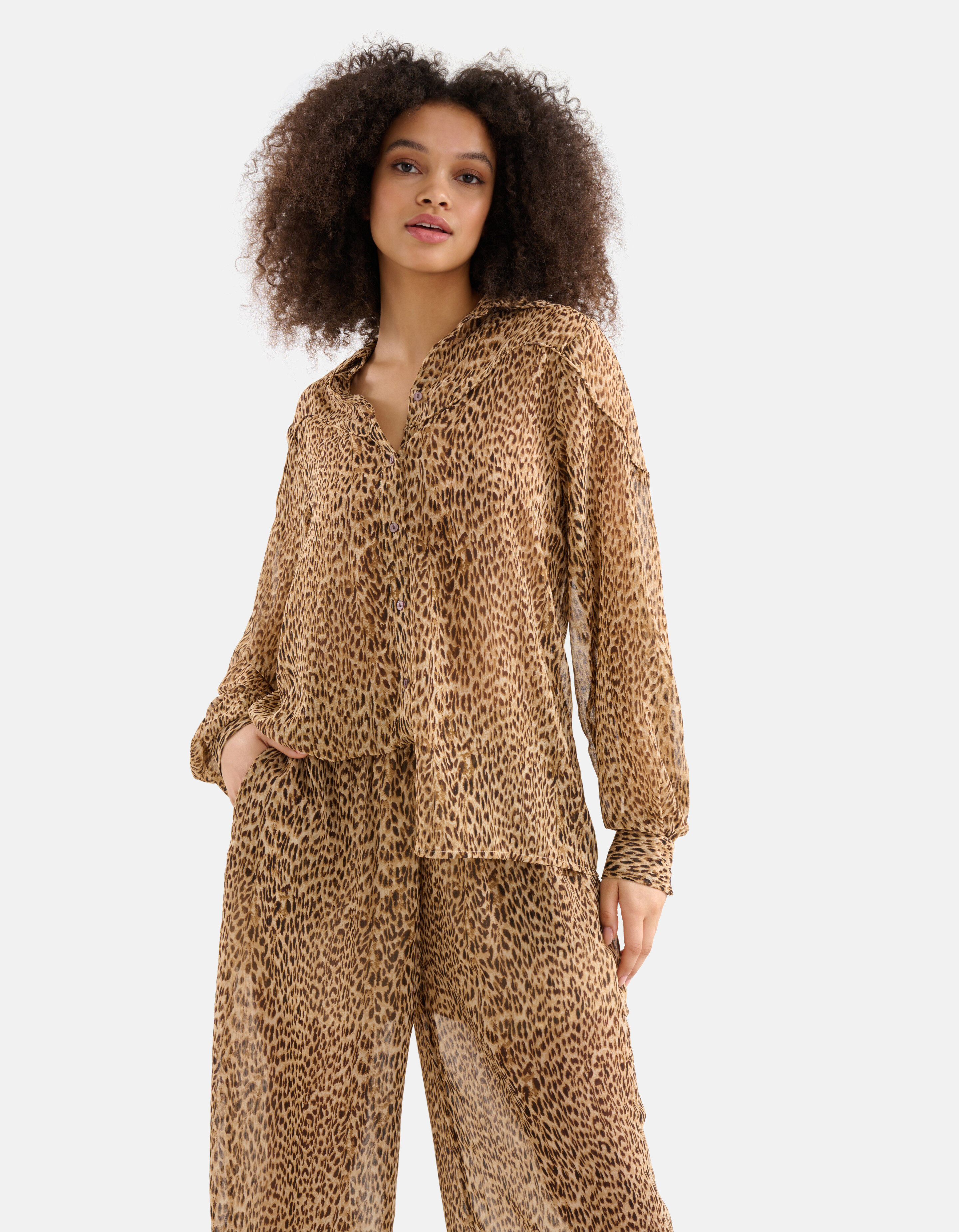 Bedrucken Sie sie! Die Cheetah-Bluse hat lange Ärmel, einen Kragen, einen Knopfverschluss und eine übergroße Passform. Das Kleidungsstück zeichnet sich durch seinen durchscheinenden Stoff und die braune Farbe mit einem Allover-Geparden-Print aus. Außerdem haben die Ärmel unten Bündchen, die den Ärmeln einen zusätzlichen Puff-Effekt verleihen. Das Kleidungsstück besteht aus 100 % Polyester und ist daher von hoher Qualität und angenehm zu tragen. Vervollständigen Sie den Look mit der passenden Gepardenhose für ein komplettes Set. Das Model ist 173 cm groß und trägt Größe S. Der Artikel hat eine Gesamtlänge von 79,5 cm bei Größe S.