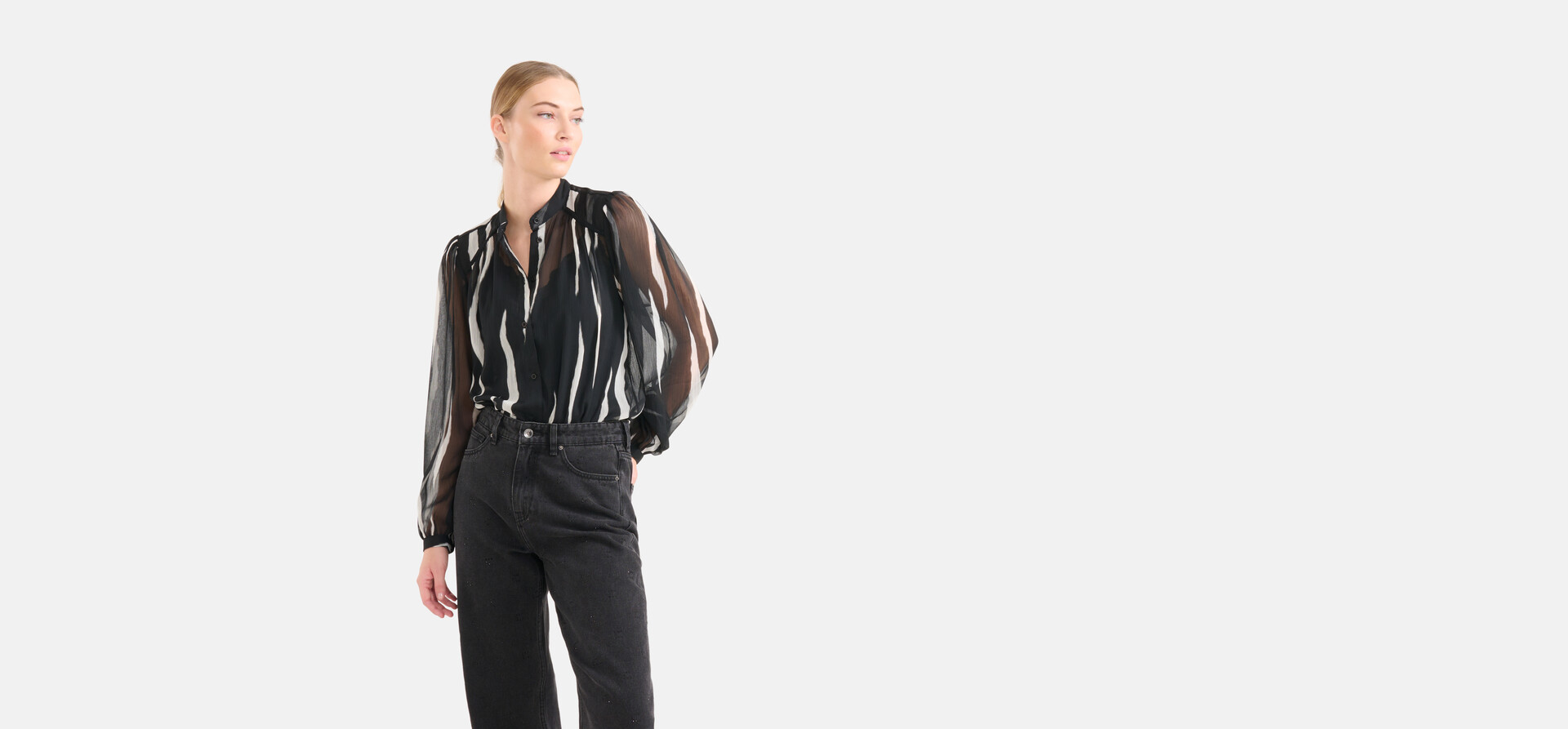 Ich sehe durch! Die Chiffonbluse hat lange, weite Ärmel, einen hohen Halsausschnitt, ein nicht dehnbares Material, einen Knopfverschluss und eine normale Passform. Das Kleidungsstück zeichnet sich durch die schwarze Farbe mit einem Allover-Zebra-Print in der Farbe Weiß aus. Ein schönes Detail ist, dass der Zebradruck invertiert ist, was ihm einen kantigen und einzigartigen Effekt verleiht. Außerdem ist die Bluse transparent. Möchten Sie das lieber nicht haben? Dann tragen Sie ein schwarzes Basic-Top von Shoeby darunter. Es besteht aus 100 % Polyester und ist daher sehr hochwertig und formbeständig. Kombinieren Sie es mit einer Jeans mit weitem Bein und einem Paar Absätze für einen lässigen, schicken Look! Das Model ist 177 cm groß und trägt Größe S. Der Artikel hat eine Gesamtlänge von 64 cm bei Größe S.