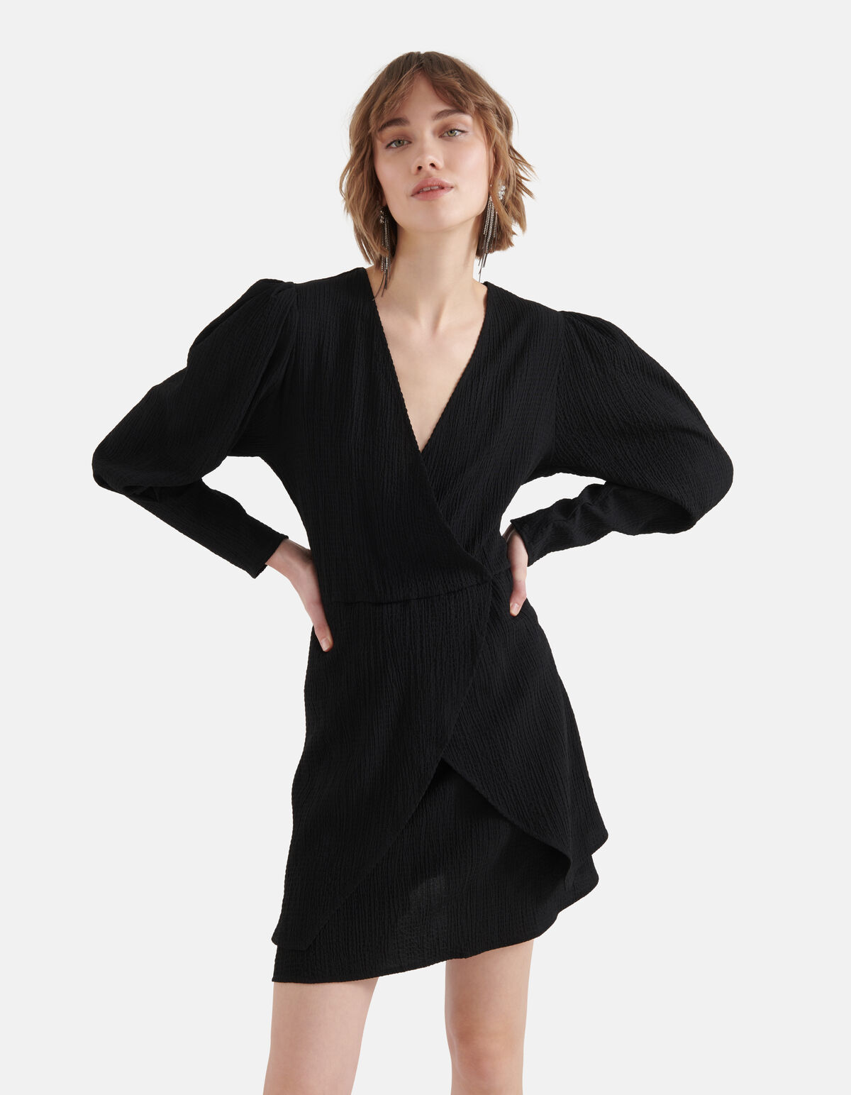 Unverzichtbar für den Kleiderschrank! Ein kleines schwarzes Kleid ist ein zeitloser Klassiker. Das Crinkle Dress hat lange Puffärmel, einen V-Ausschnitt, ein ausgestelltes Design, einen elastischen Bund und eine Minilänge. Es zeichnet sich durch die schwarze Farbe und den Crinkle-Stoff aus, der dem Kleid eine verspielte Wirkung verleiht. Ein hübsches Detail ist die zusätzliche Stofflage auf der Vorderseite. Es ist aus Viskose, Polyester und Elastan gefertigt. Dank dieser Zusammensetzung ist es von starker Qualität, dehnt sich leicht, ist formbeständig, farbecht und angenehm zu tragen. Vervollständigen Sie den Look mit Ohrringen und rosafarbenen Strassabsätzen und Sie sind bereit für die Party! Das Model ist 179 cm groß und trägt Größe S. Der Artikel hat eine Gesamtlänge von 91,5 cm bei Größe S.