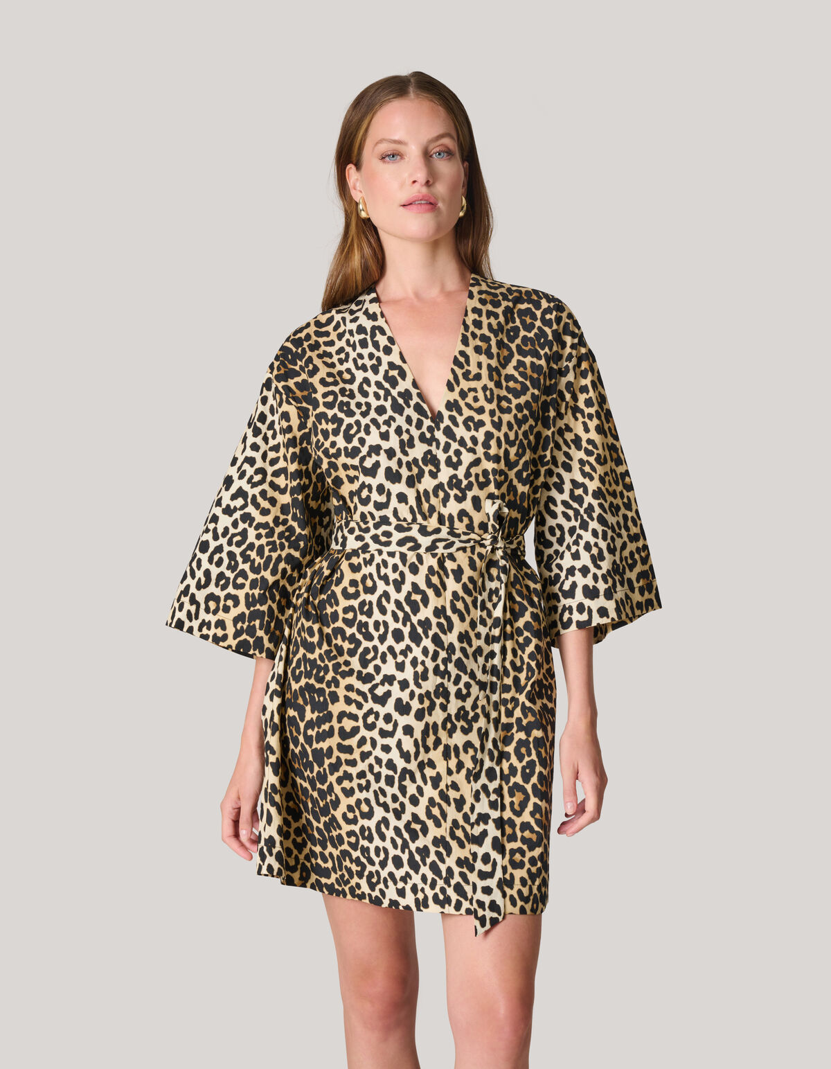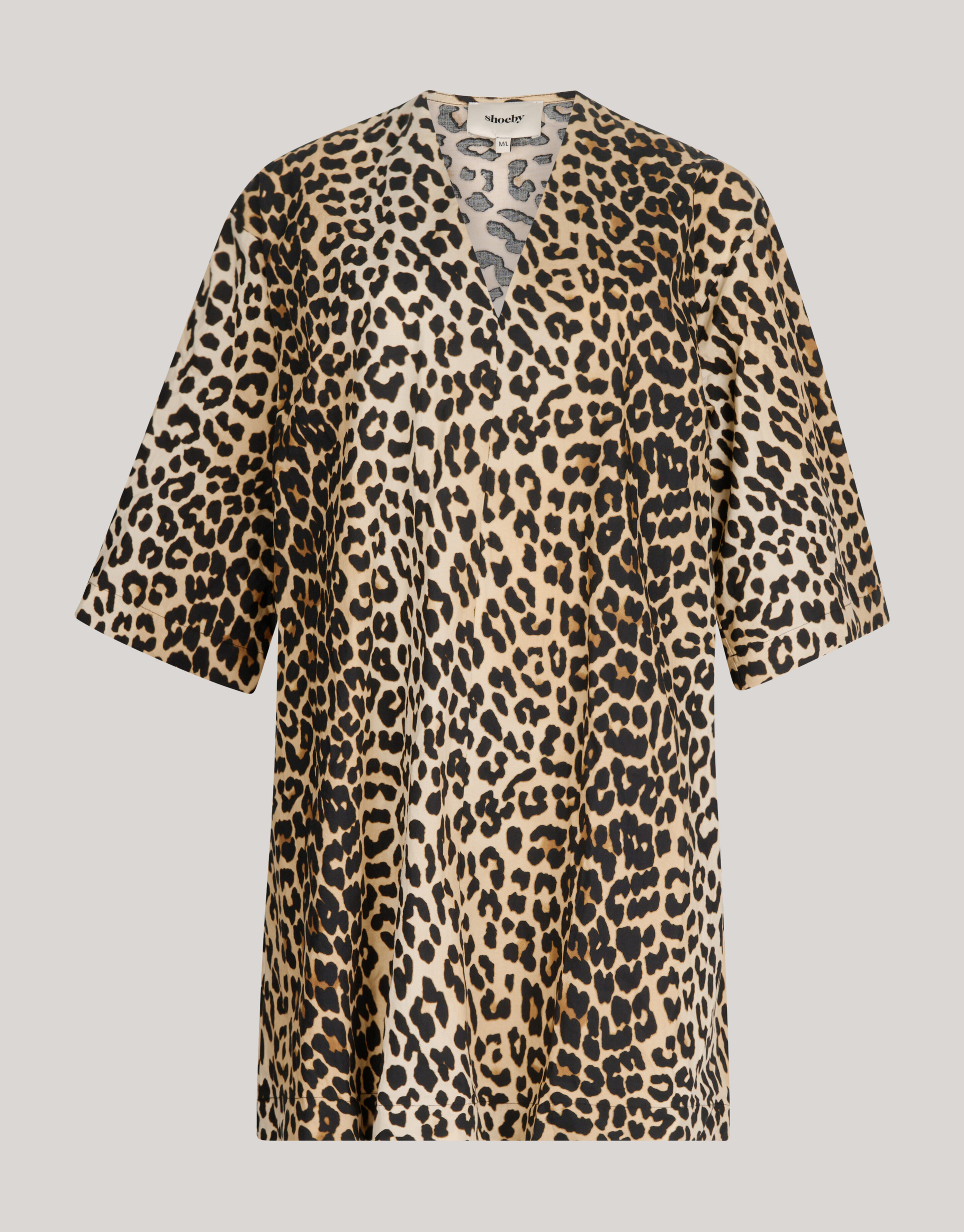 Ikonisch! Das Leopard Mini Kleid hat Dreiviertelärmel, einen V-Ausschnitt, eine Mini-Länge und ein ausgestelltes Modell. Das Kleid zeichnet sich durch den Leopardenprint aus. Darüber hinaus ist das Kleid aus 100% Baumwolle gefertigt, was für einen angenehmen Tragekomfort sorgt.