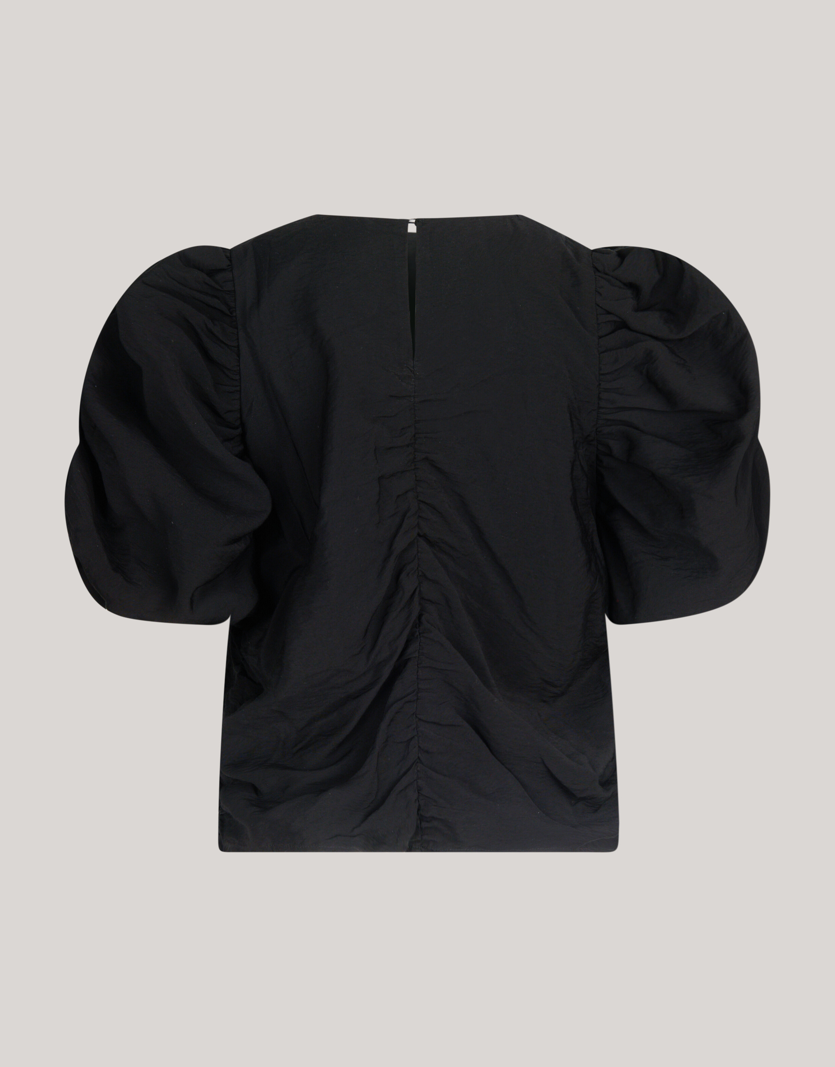 Ein Must-Have für den Sommer! Das Puff Sleeve Top hat kurze Ärmel, einen hohen Halsausschnitt und eine normale Passform. Der Artikel zeichnet sich durch die schwarze Farbe aus. Darüber hinaus besteht es aus Viskose und Polyester. Diese Zusammensetzung macht es hochwertig, farbecht, formbeständig und angenehm zu tragen. Vervollständigen Sie den Look mit einer Jeans für einen stilvollen Look!