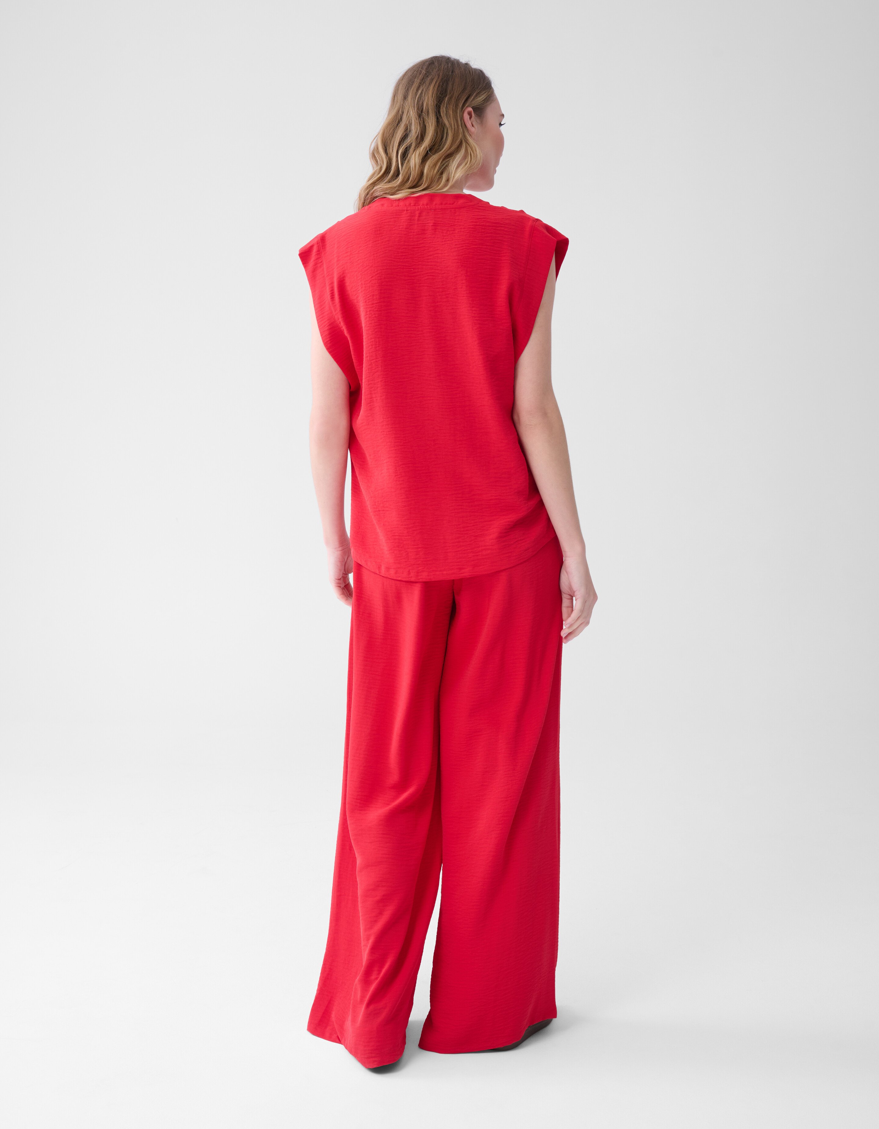 Entdecken Sie diesen Artikel für jede Gelegenheit! Dieses Top mit V-Ausschnitt in Rot hat einen V-Ausschnitt, ein nicht dehnbares Material und eine normale Passform. Außerdem zeichnet sich das Top durch seine rote Farbe aus. Das Oberteil besteht aus 100% Polyester und ist somit von hoher Qualität. Das Model ist 176 cm groß und trägt Größe S. Das Oberteil hat eine Gesamtlänge von 63,2 cm bei Größe S. Kombinieren Sie das Oberteil mit der passenden Hose für einen kompletten Look!